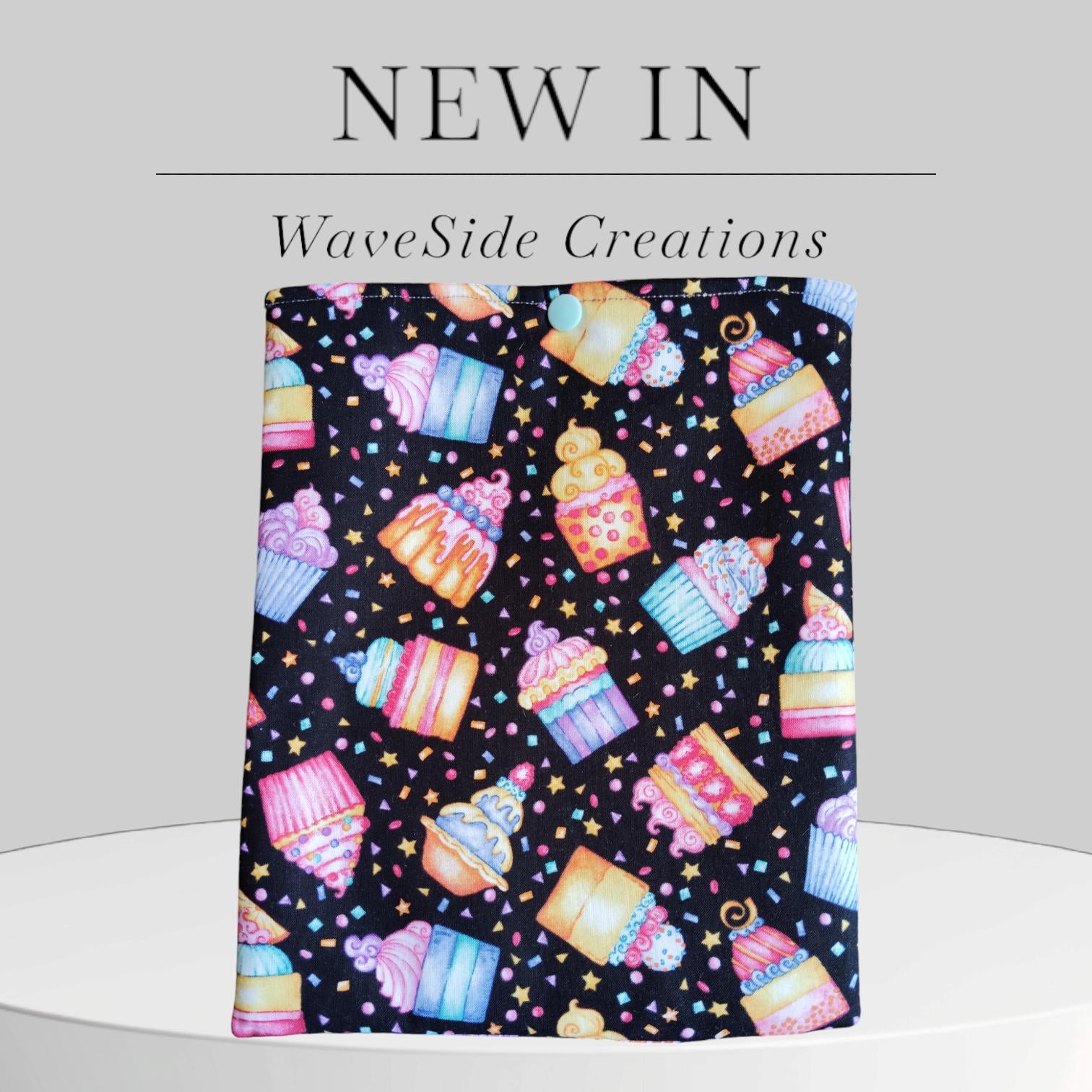 Discover the perfect blend of style and functionality with our beautifully designed book sleeve, ideal for protecting your favorite reads or tech devices. Crafted from durable cotton fabric on the inside and out, with wadding and batting to give it it's padding, this cover not only safeguards your book or tablet but also adds a touch of elegance to your collection. The charming cupcake/baking design makes it a delightful addition to any reading nook, while the spacious interior accommodates various sizes, ensuring your items stay safe and stylish wherever you go.