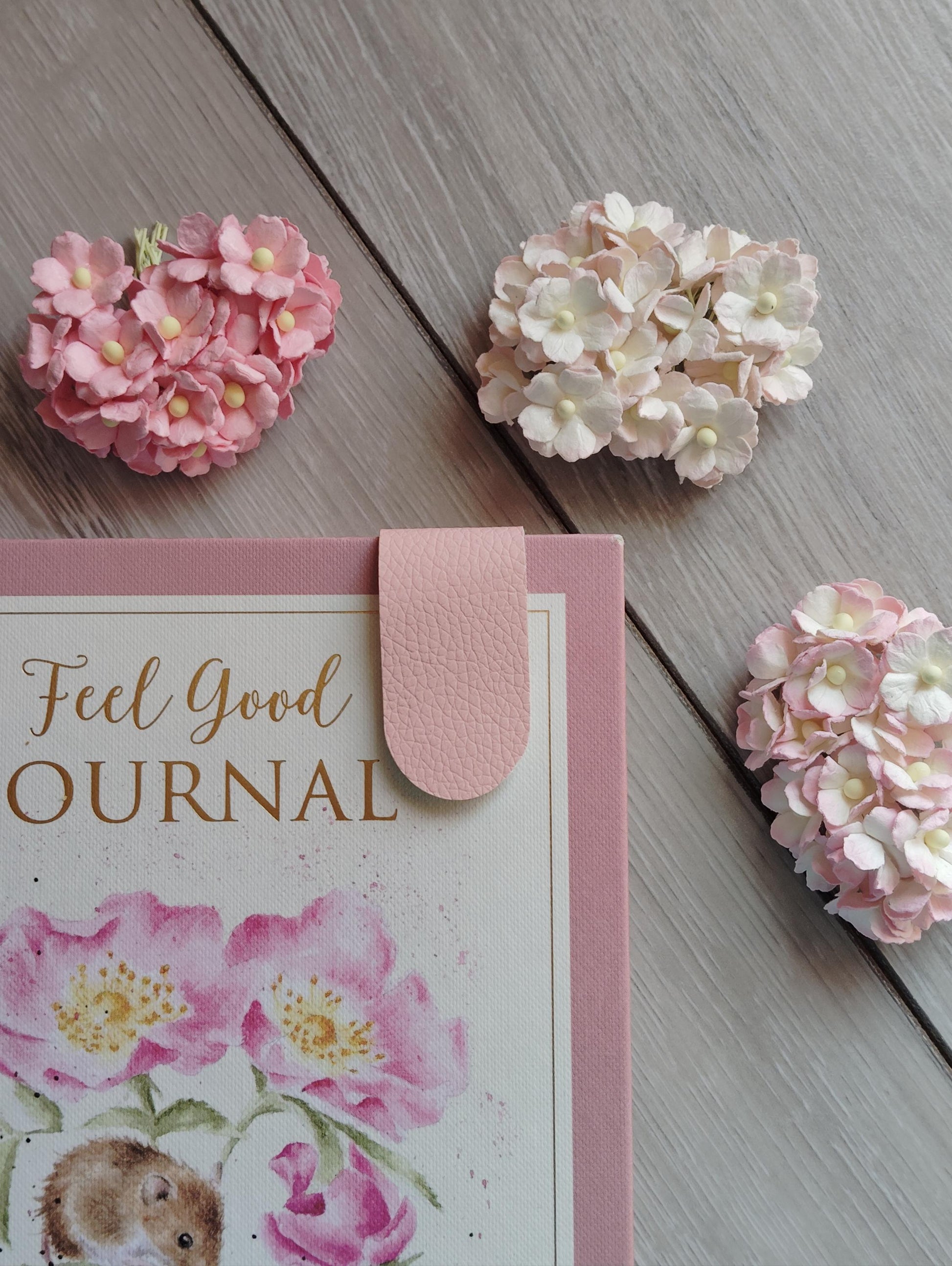 Magnetic bookmarks, leatherette bookmarks, plain pink and white floral, book lovers gift, thank you teacher gift, gifts for him and her